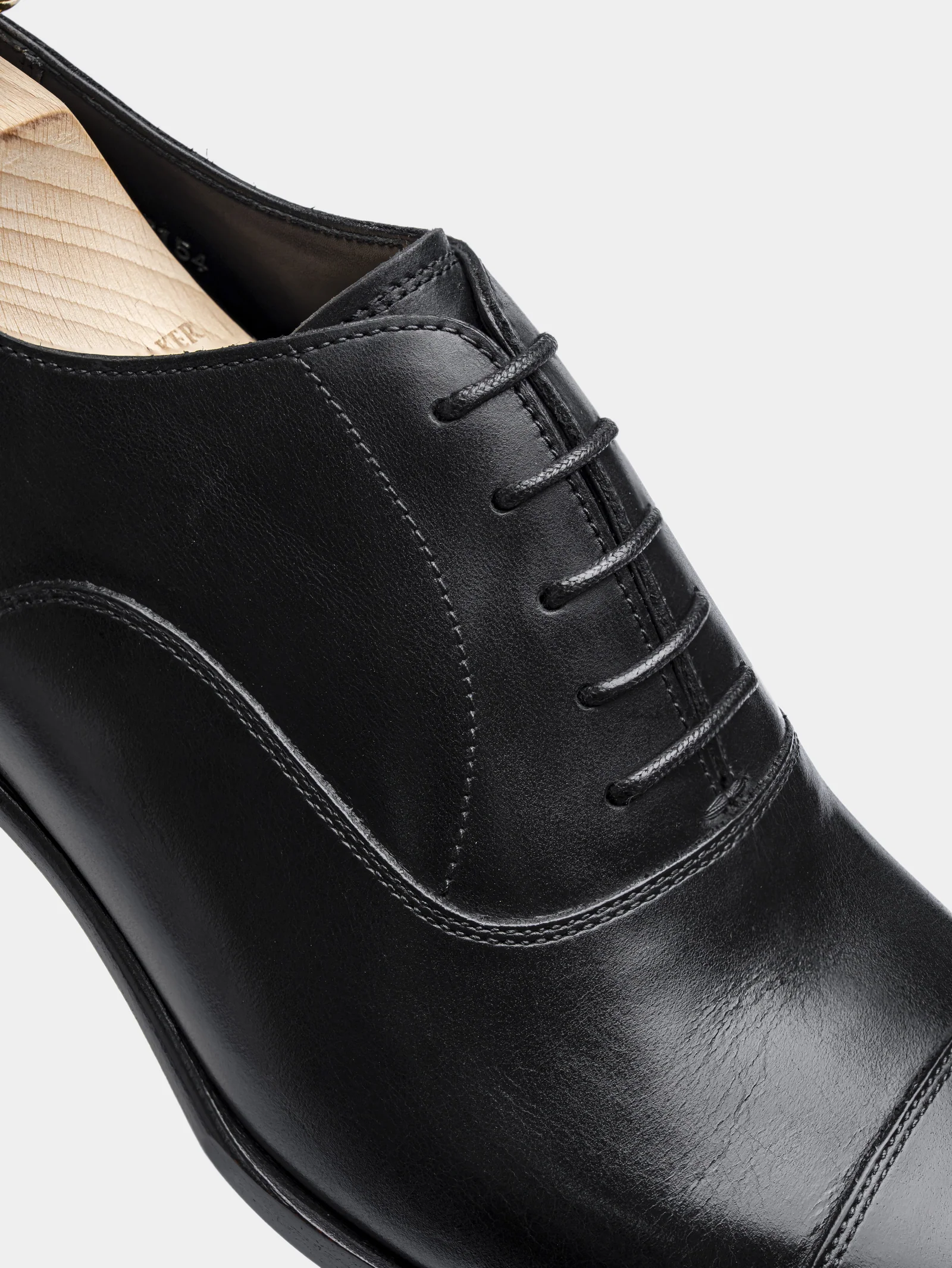 The classic captoe oxford, this time crafted on our 54 last. It offers ample space on the ball (EEE width) with asymmetrical fitting properties. A great choice if you are looking at shoes with wider widths.