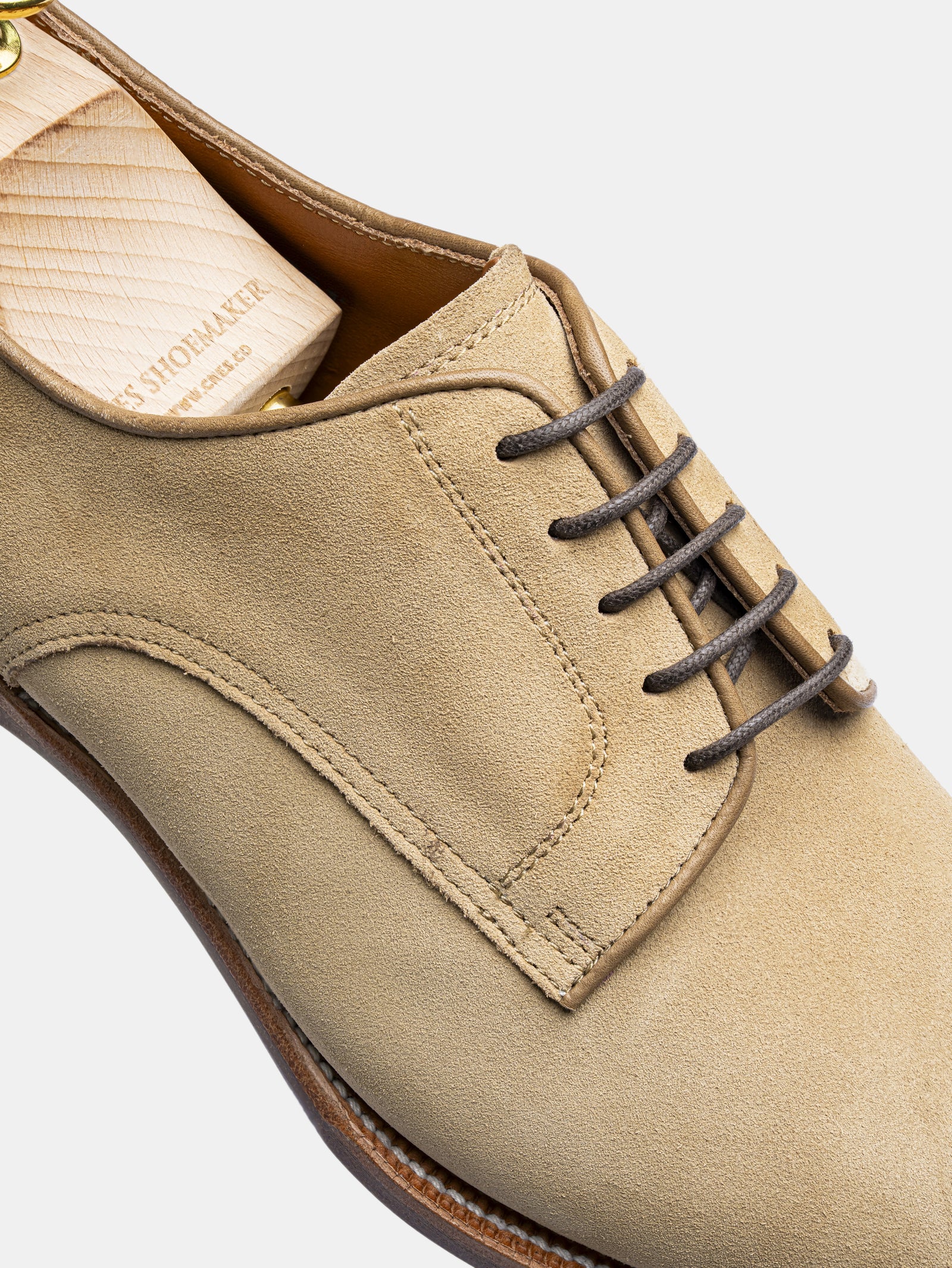 The Herbert derby, the simple 5 eyelet plain toe classic that everyone favours. The shoe features a single (close channel) leather outsole with a tight, bevelled waist, and is welted all the way through to the heels. A blend of gentle curves and details. All our shoes can be resoled if required.